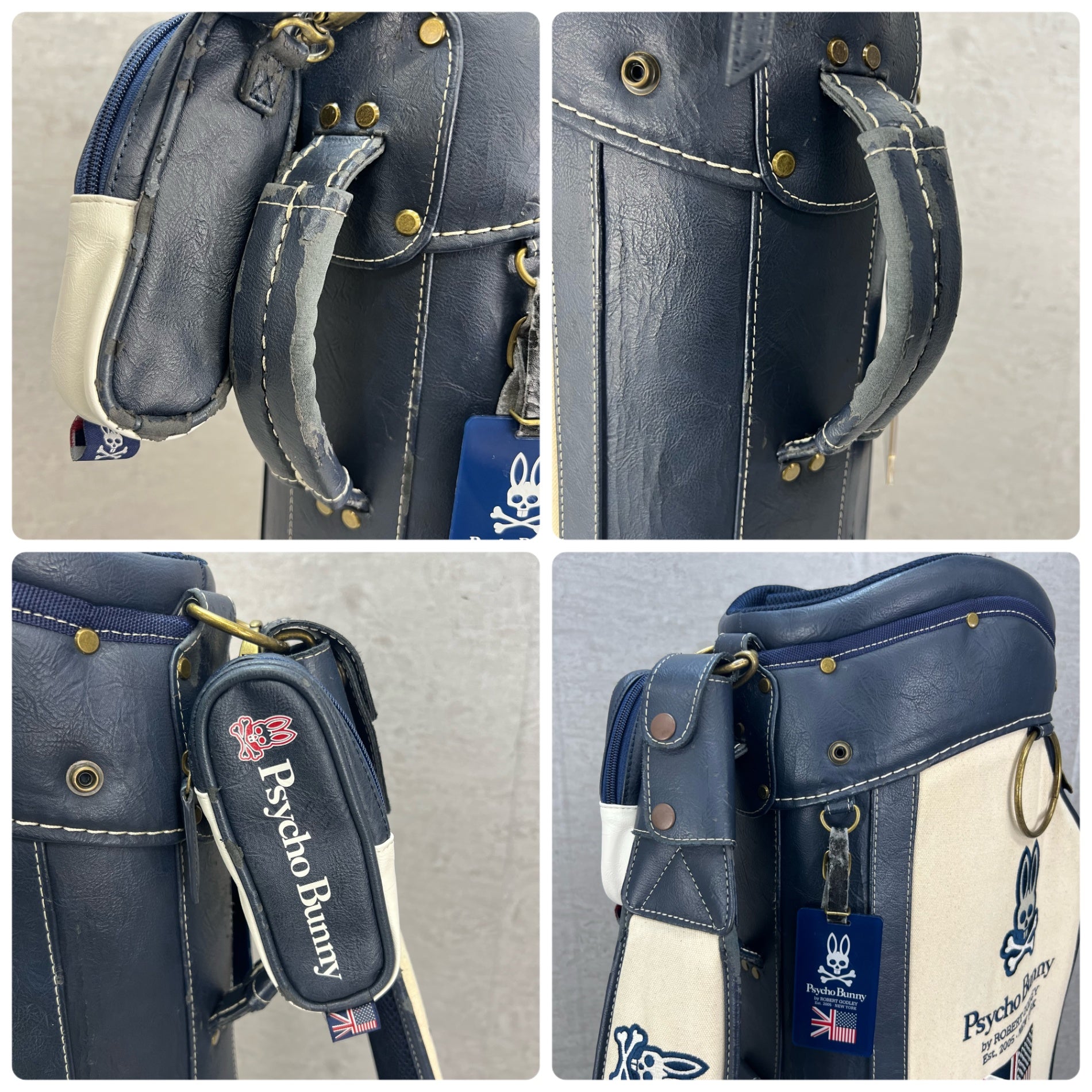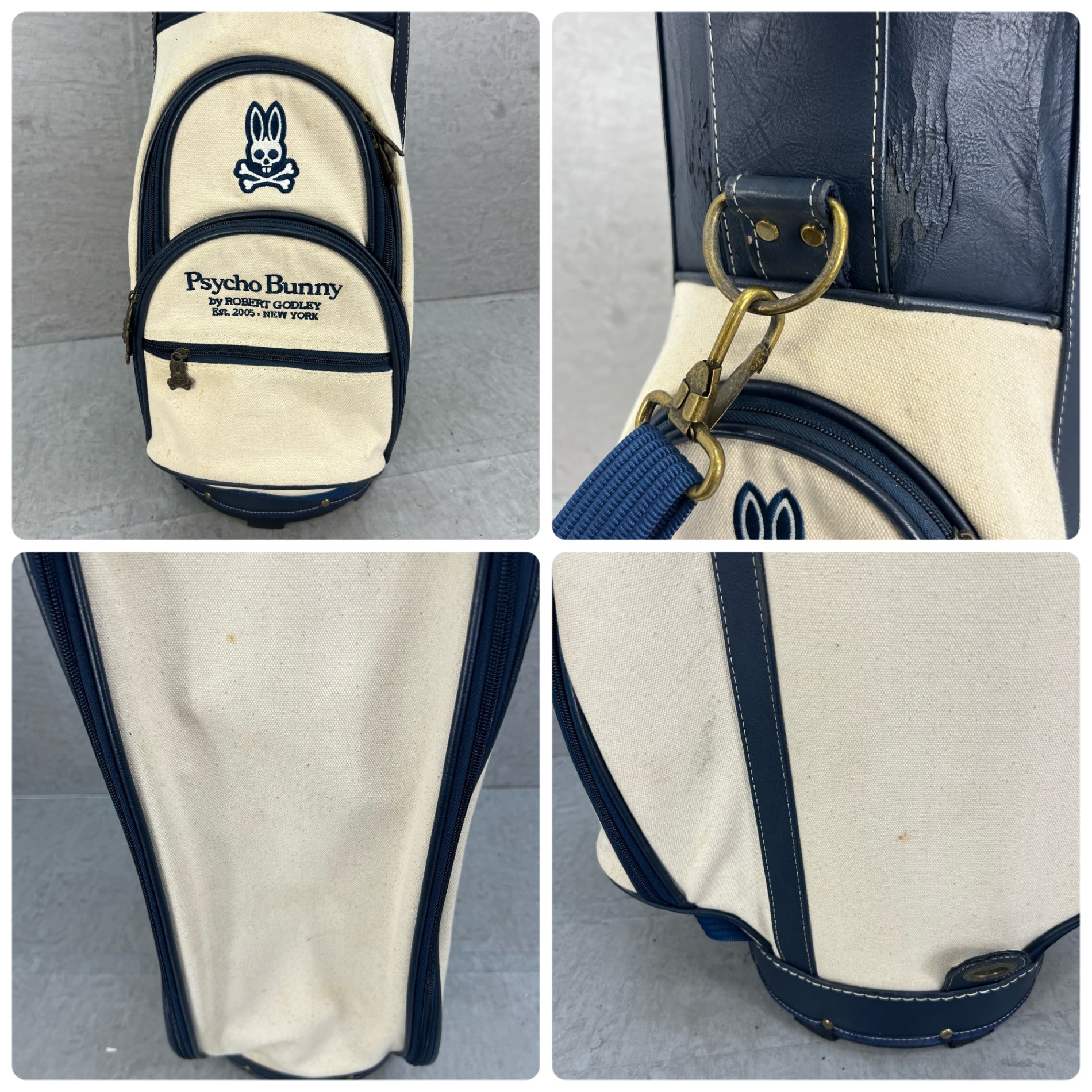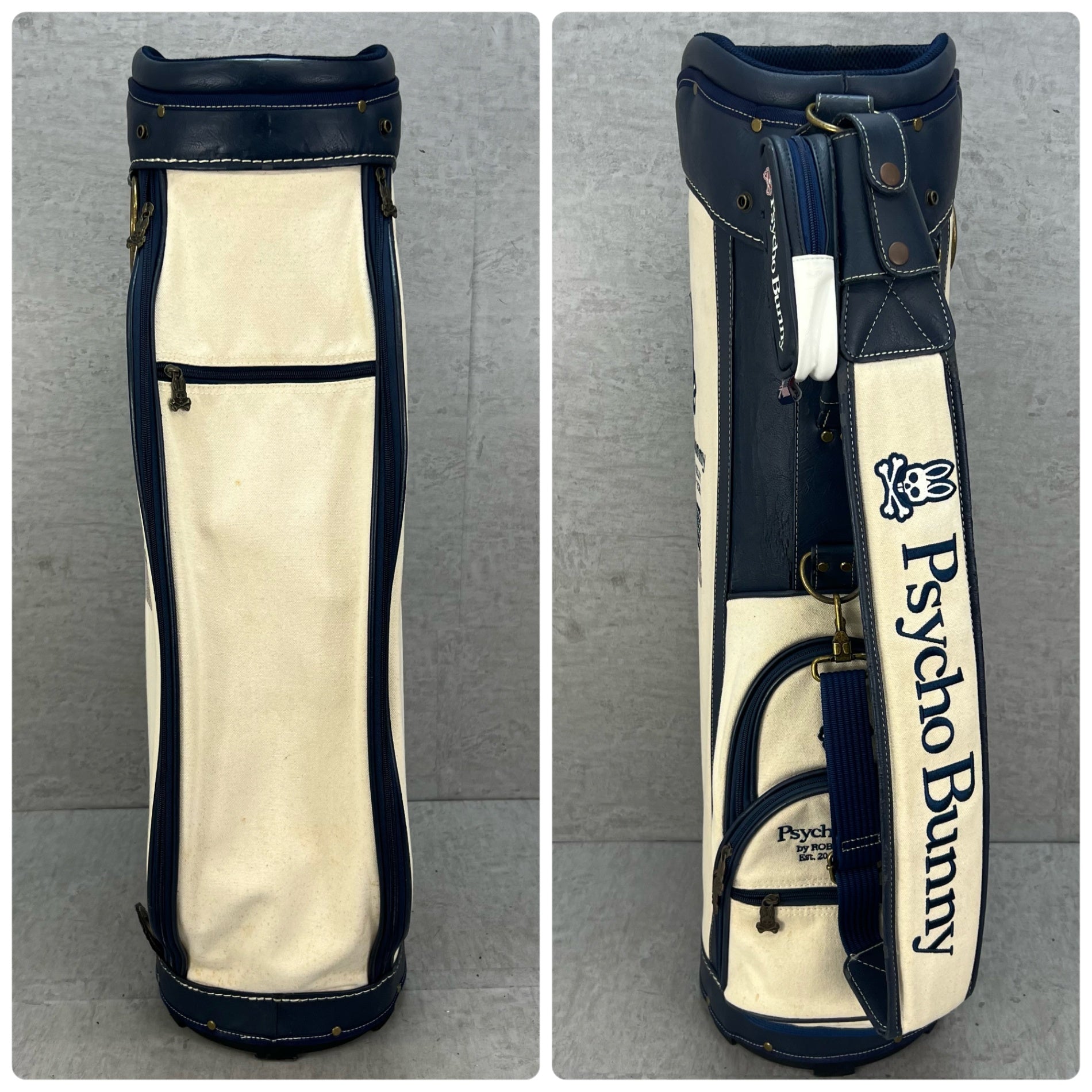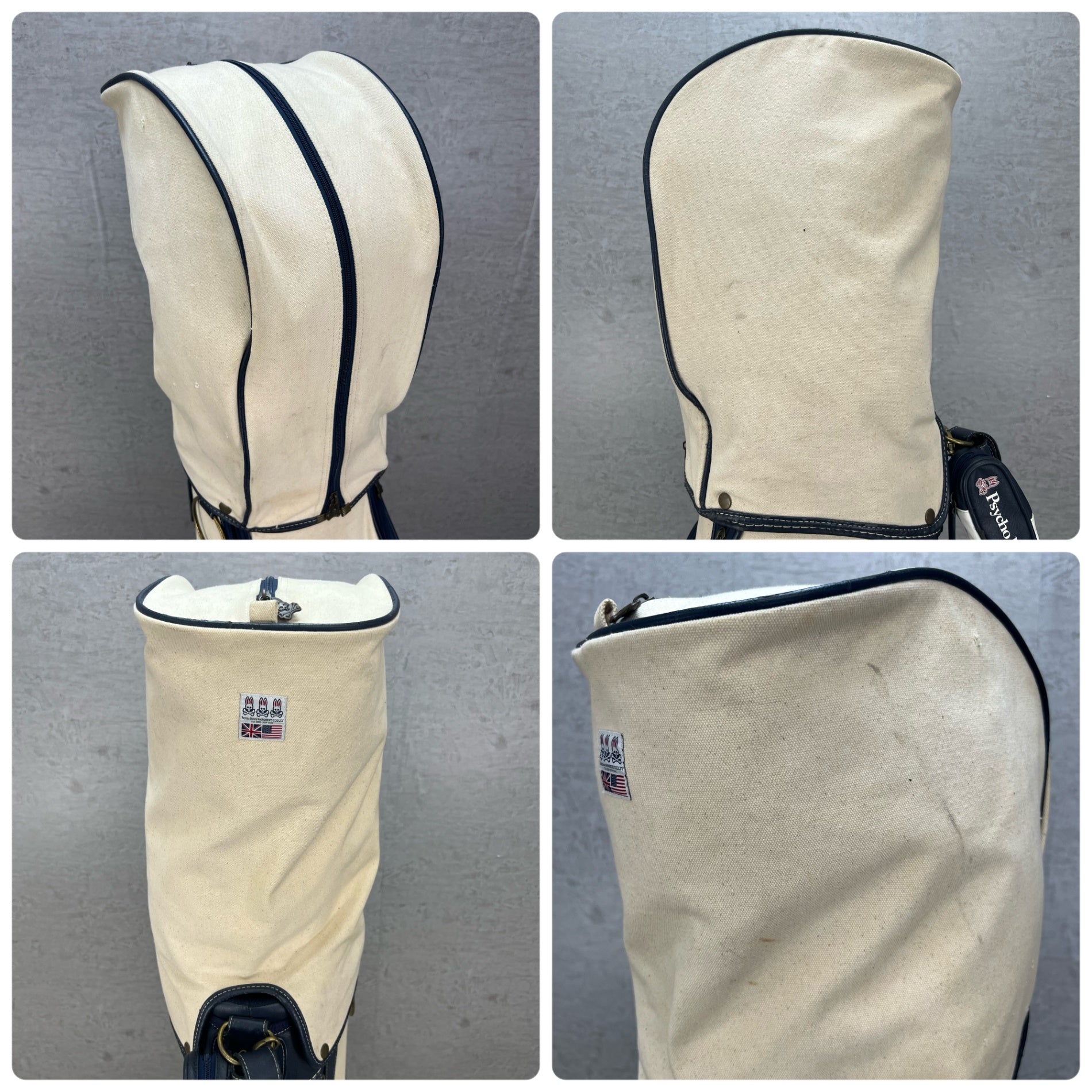 希少 帆布生地 サイコバニー ゴルフ カート式キャディバッグ 約10型 Psycho Bunny