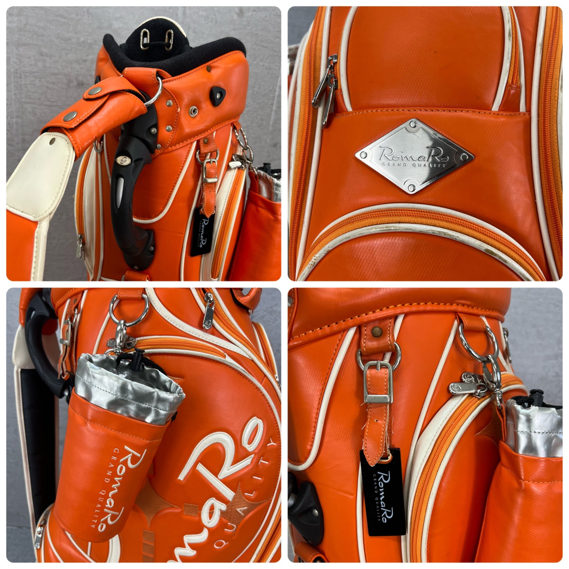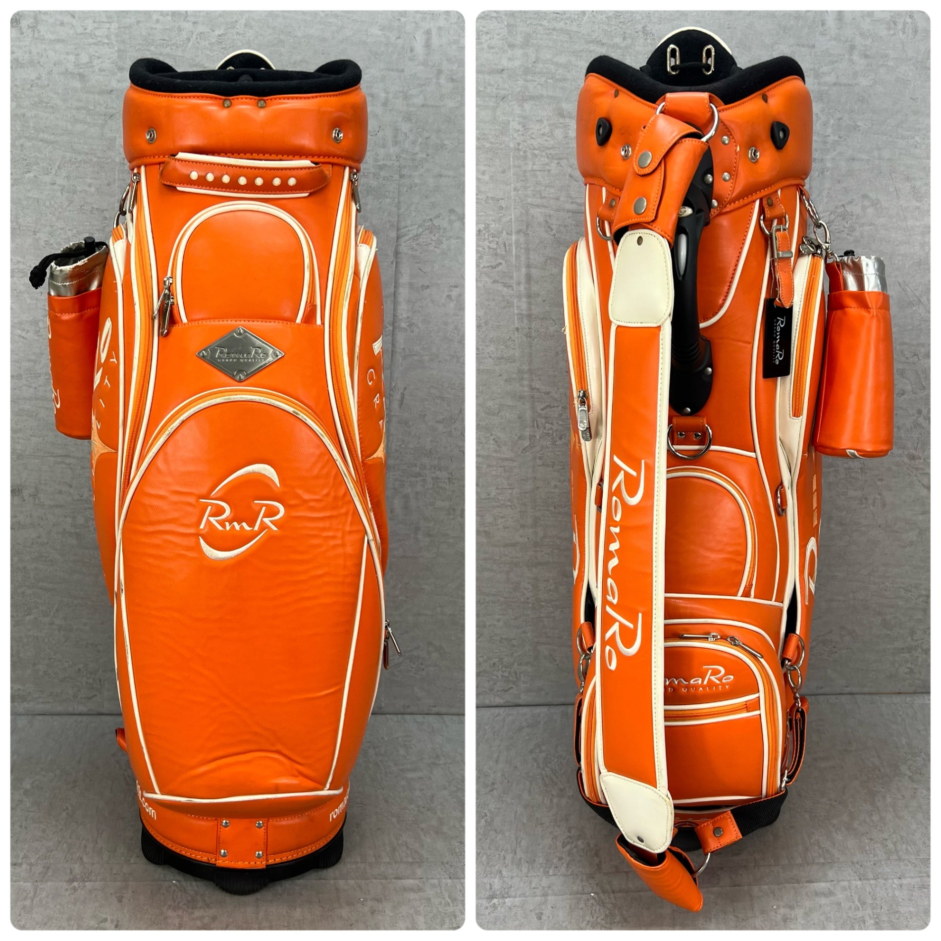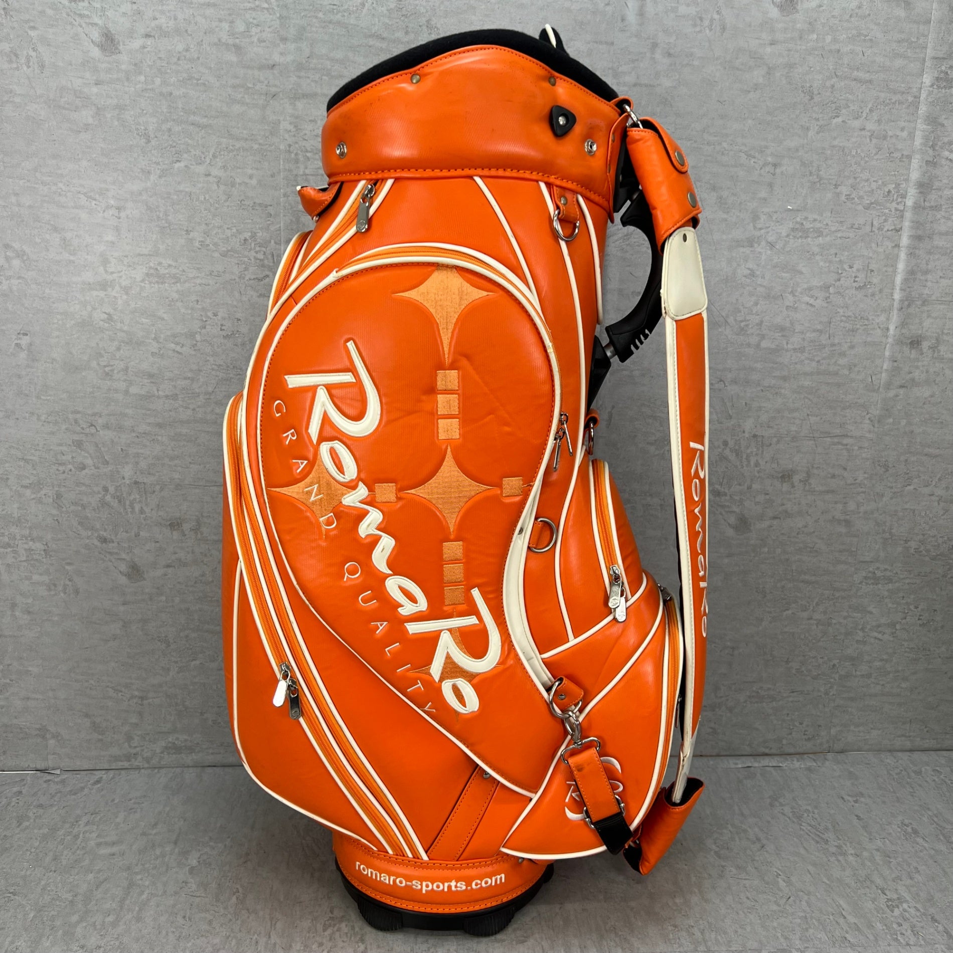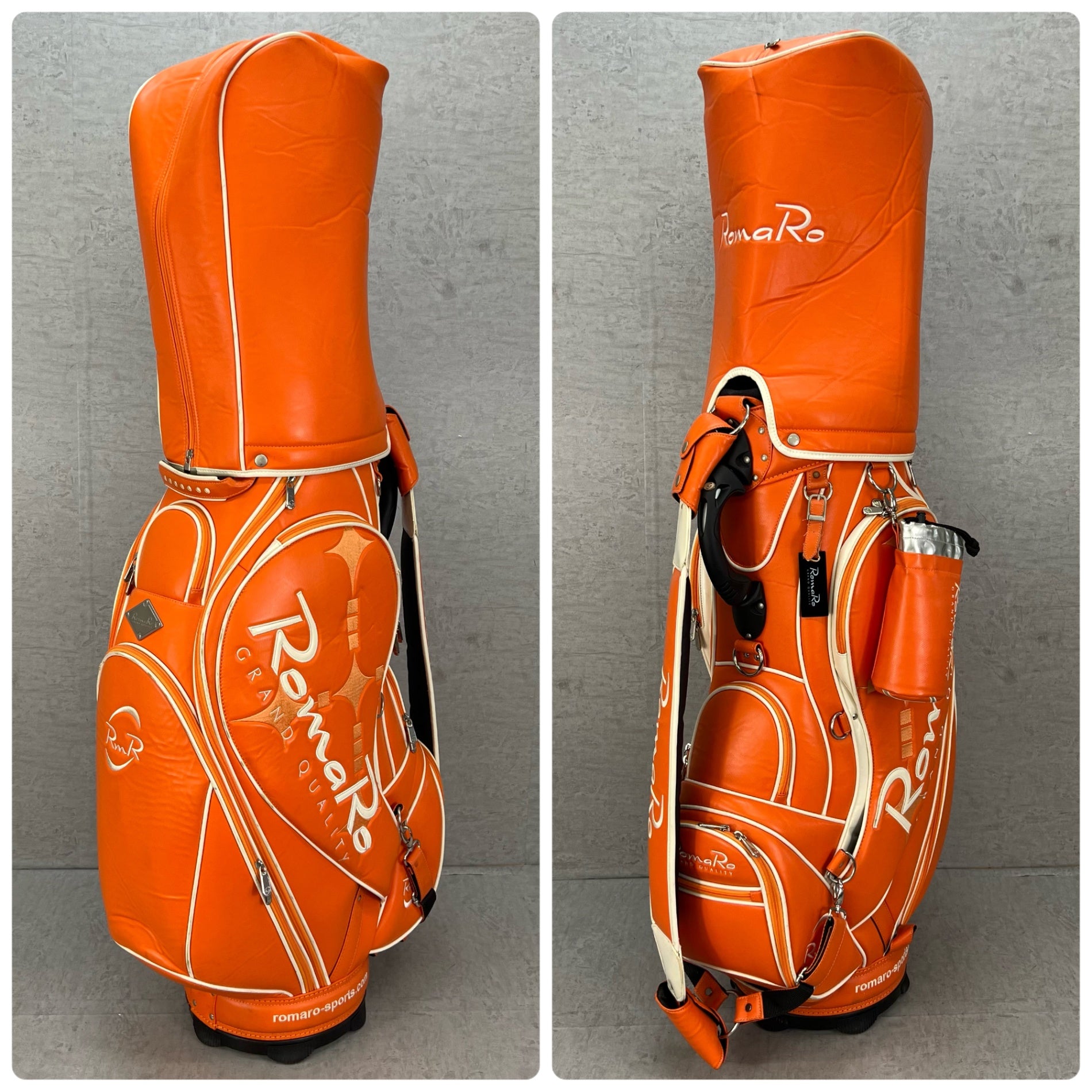 ロマロ ゴルフ カート式キャディバッグ 約10型 オレンジ PUレザー RomaRo