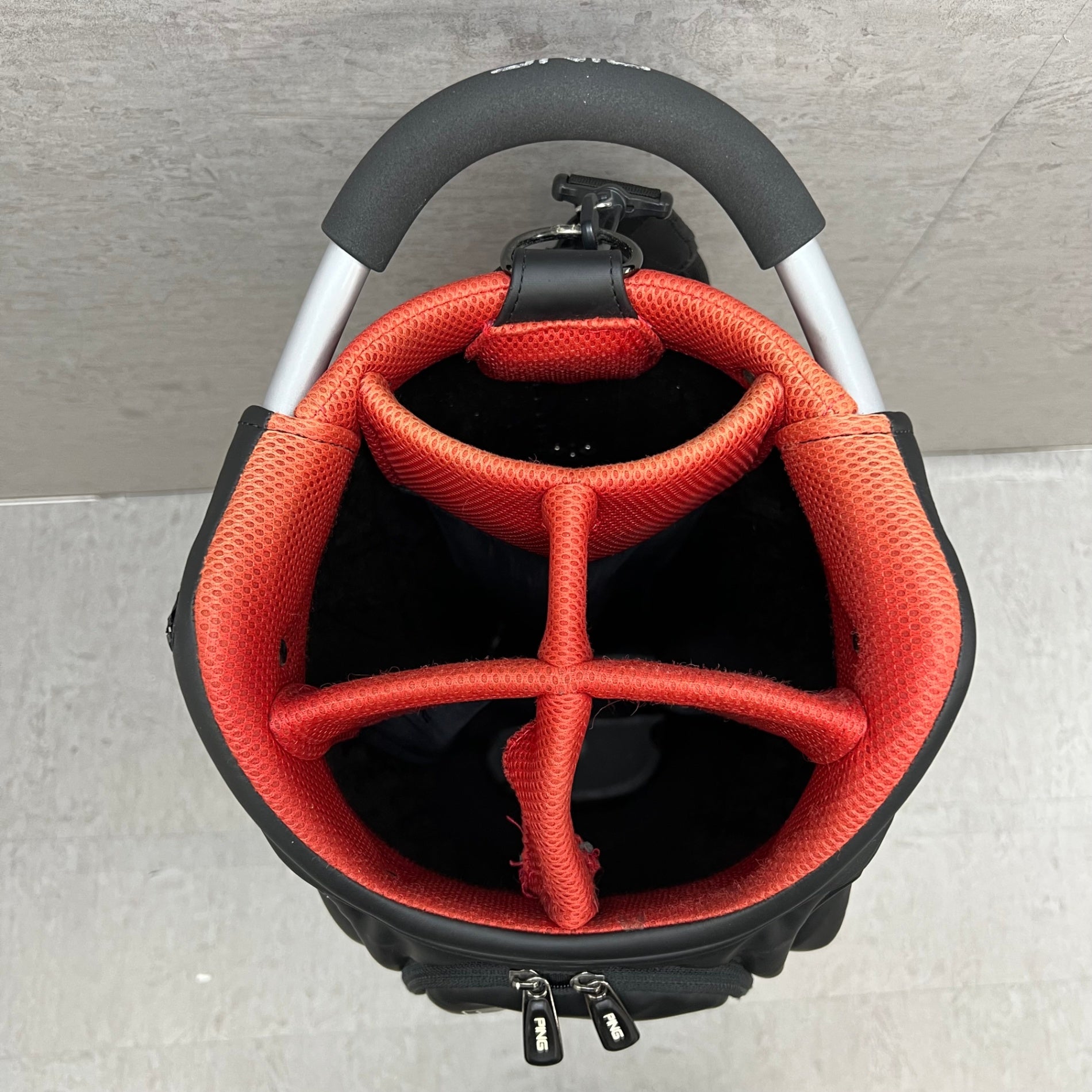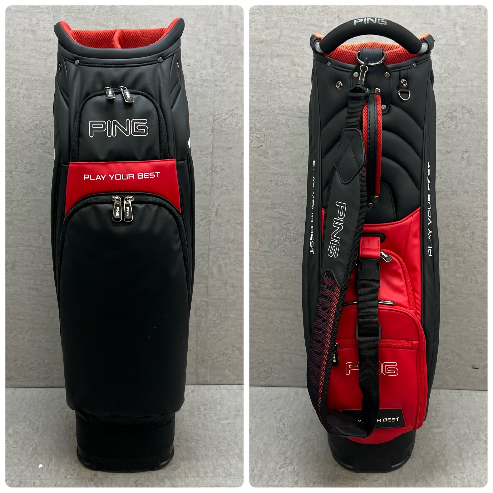 PING ゴルフ キャディバッグ カート式 約9型 合成皮革 ブラック 黒 レッド 赤 ピン