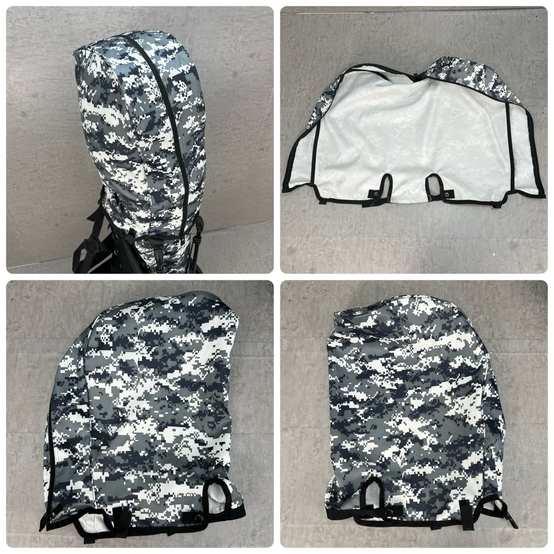 こちらの商品は中古品のため、フードの生地に小さな破れなどがありますが、