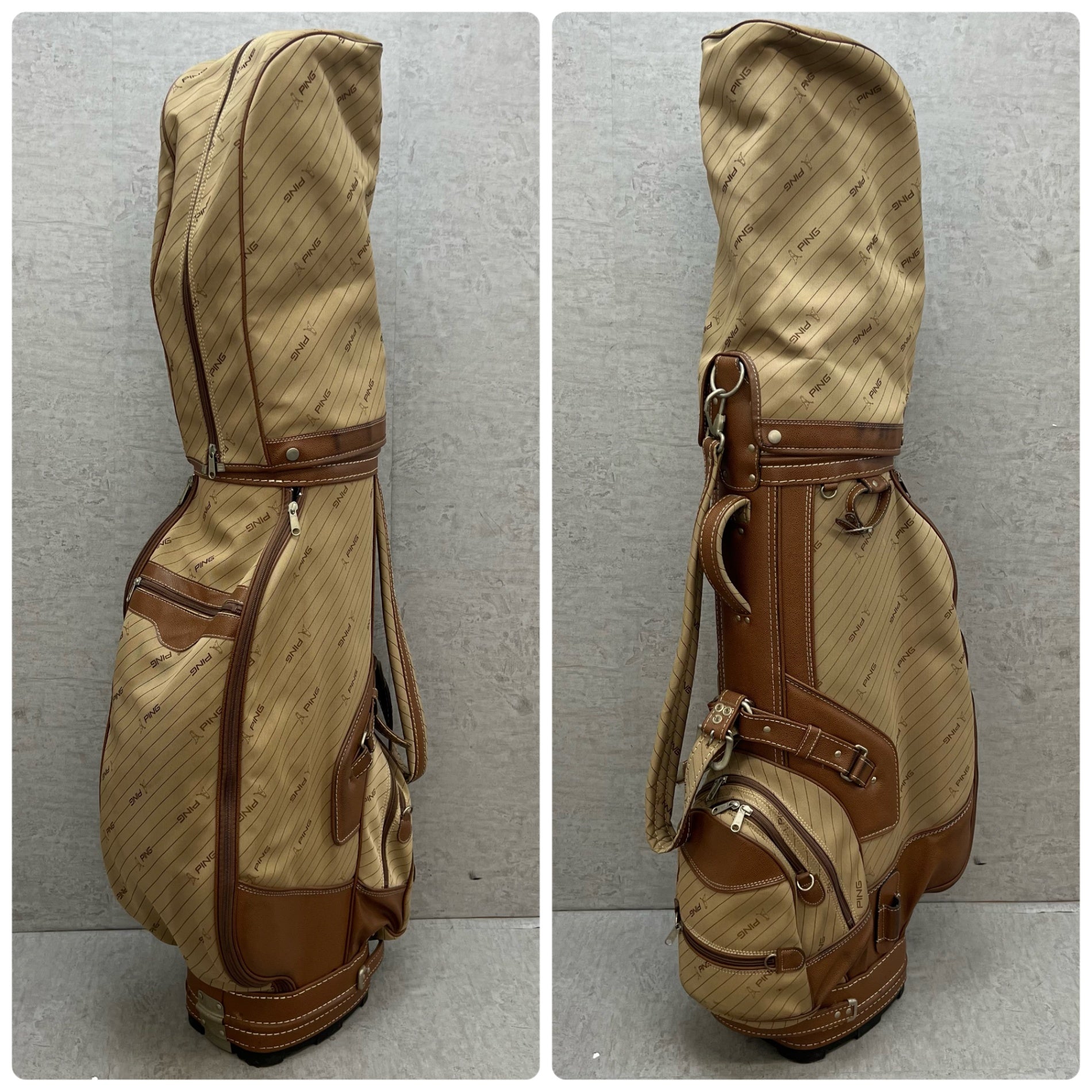 PING ゴルフ ビンテージ キャディバッグ カート式 約8.5型 ヘッドカバー ピン