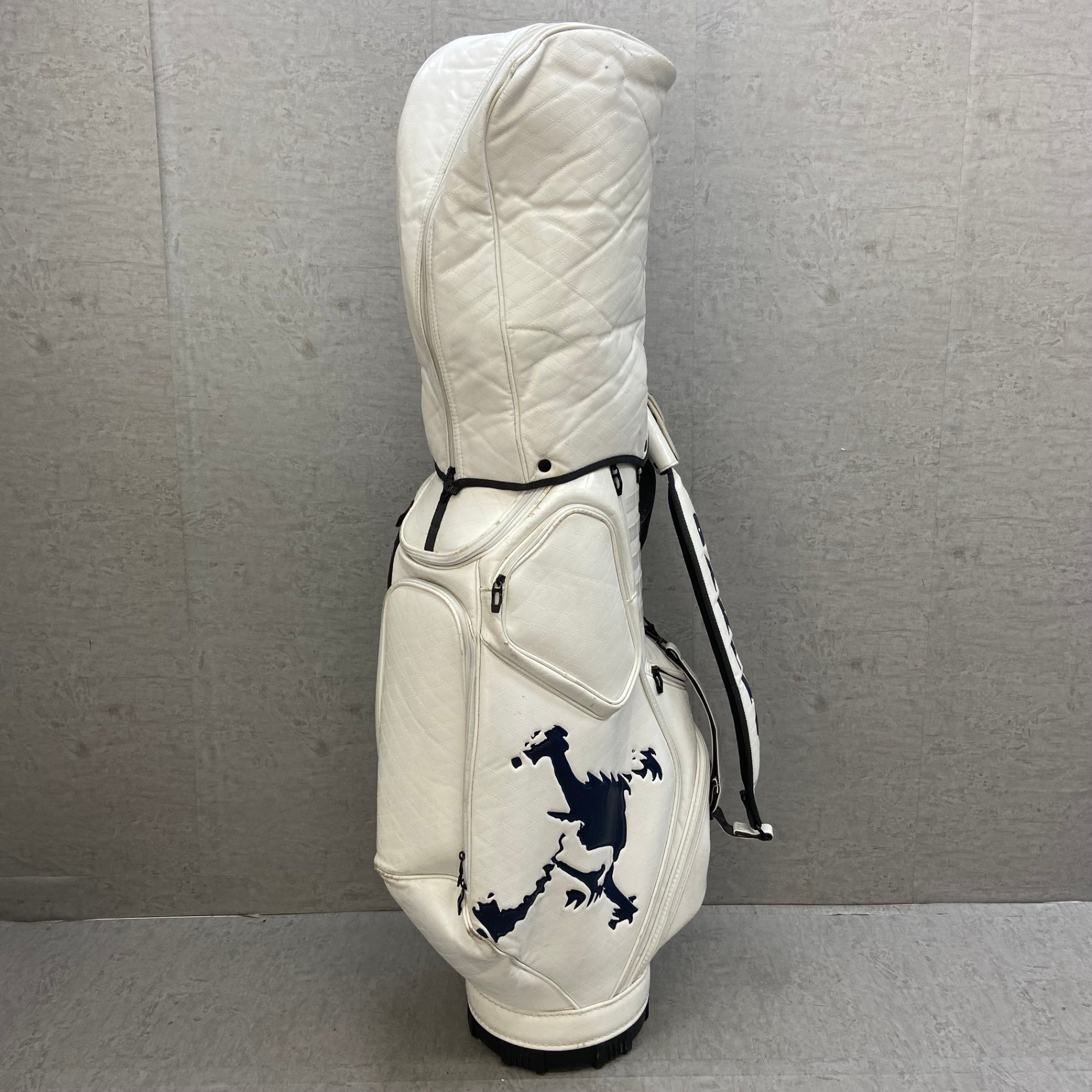 こちらの商品は中古品のため、クラブに使用に伴う傷、キャディバッグにやや汚れや生地の剥がれなどがありますが、使用に差し支えるような傷、汚れ、生地の剥がれはなく、まだまだ使用できる状態の商品になります。