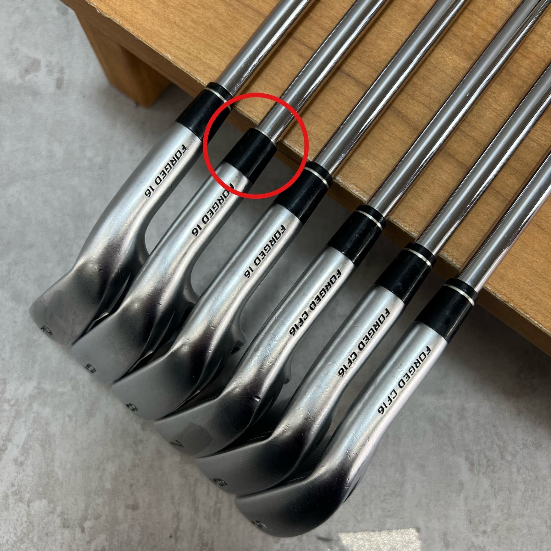 こちらの商品は中古品のため、クラブに使用に伴う傷や、9番アイアンのソケットの上部に破損などがありますが、使用に差し支えるような傷や破損はなく、まだまだ使用できる状態の商品になります。