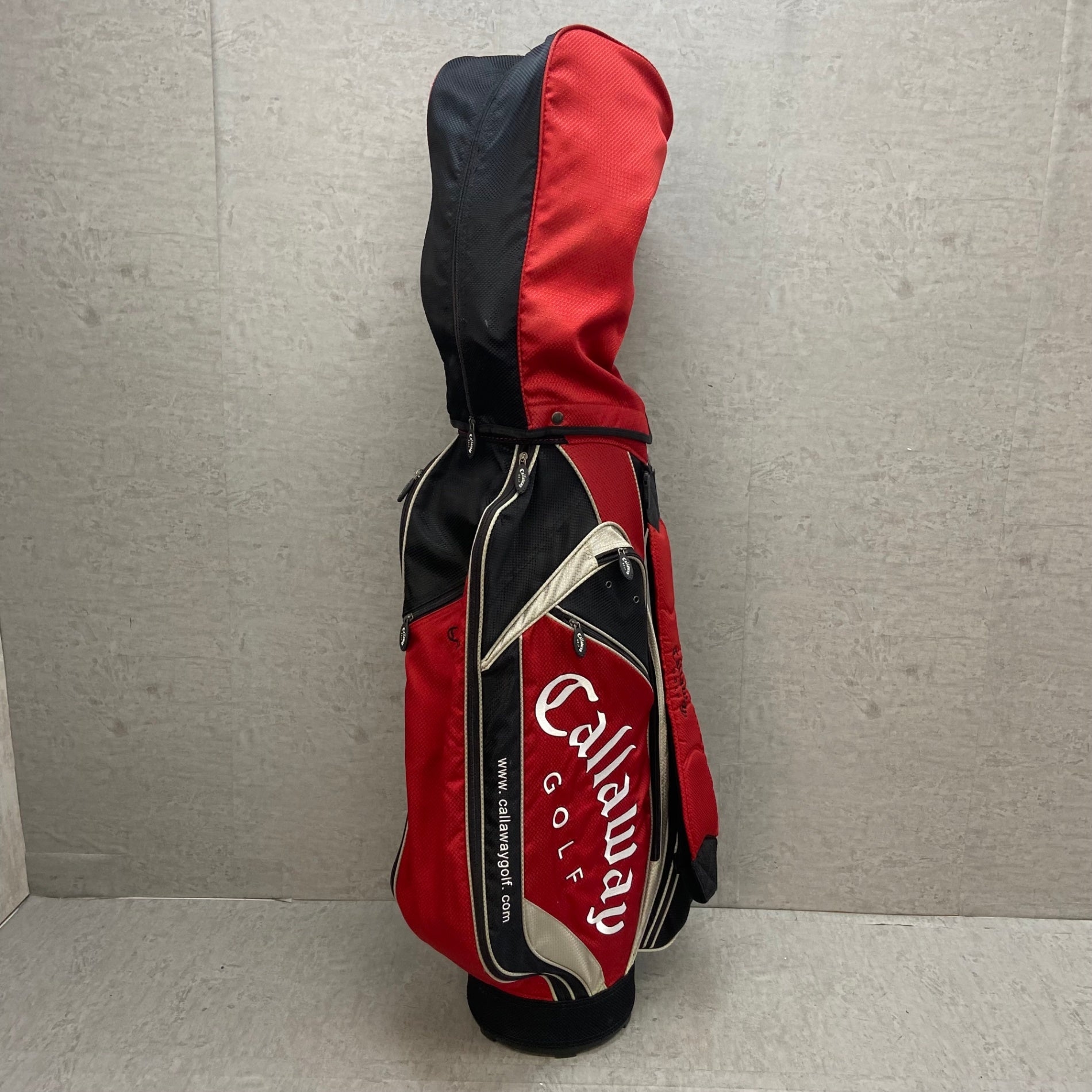 こちらの商品は中古品のため、クラブに使用に伴う傷や汚れ、キャディバッグのフードに小さな生地の破れなどがありますが、使用に差し支えるような傷や汚れや生地の破れはなく、まだまだ使用できる状態の商品になります。