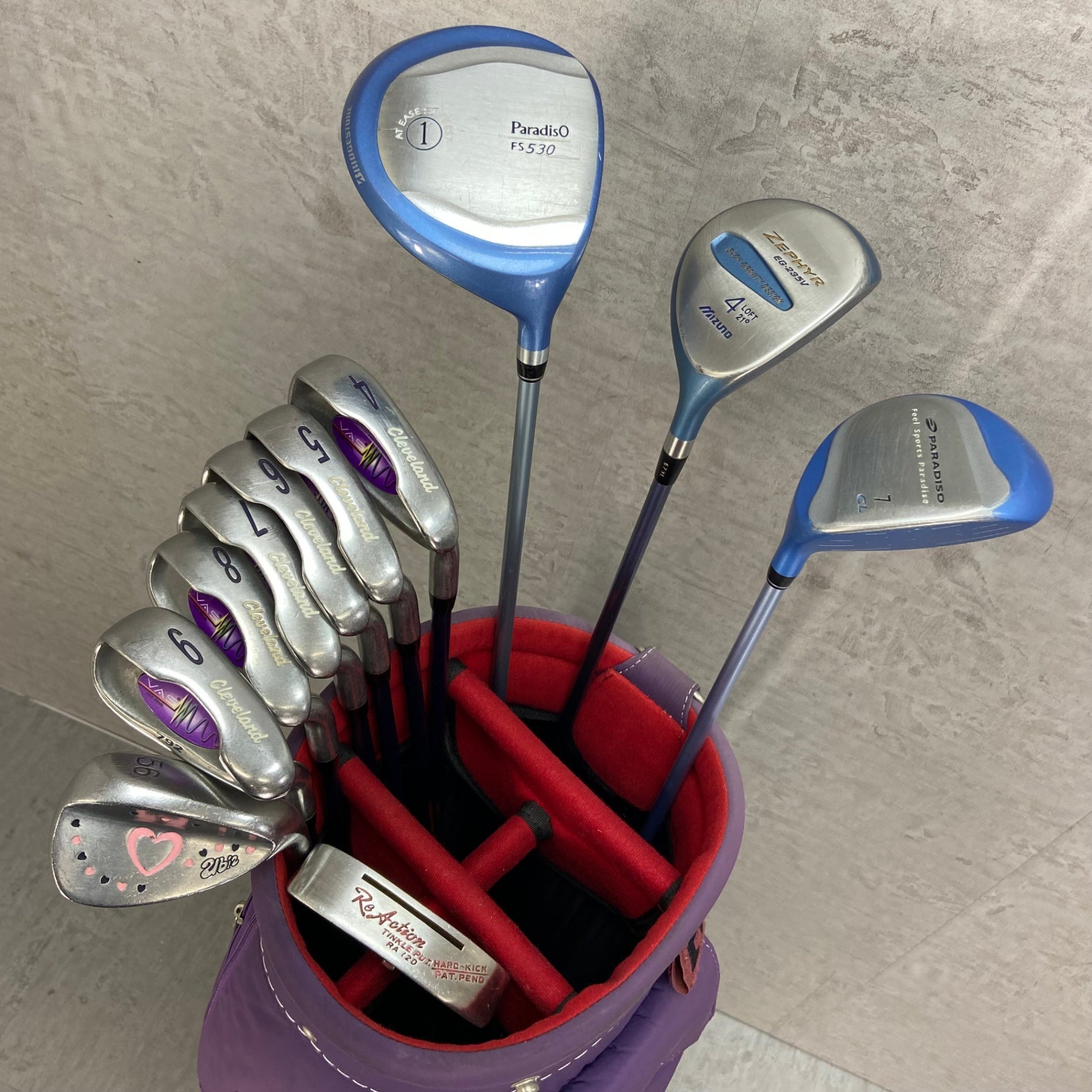 こちらの商品は中古品のため、使用に伴う傷や汚れ、キャディバッグに日焼けによる色の変化などがありますが、使用に差し支えるような傷や汚れはなく、まだまだ使用できる状態の商品になります。