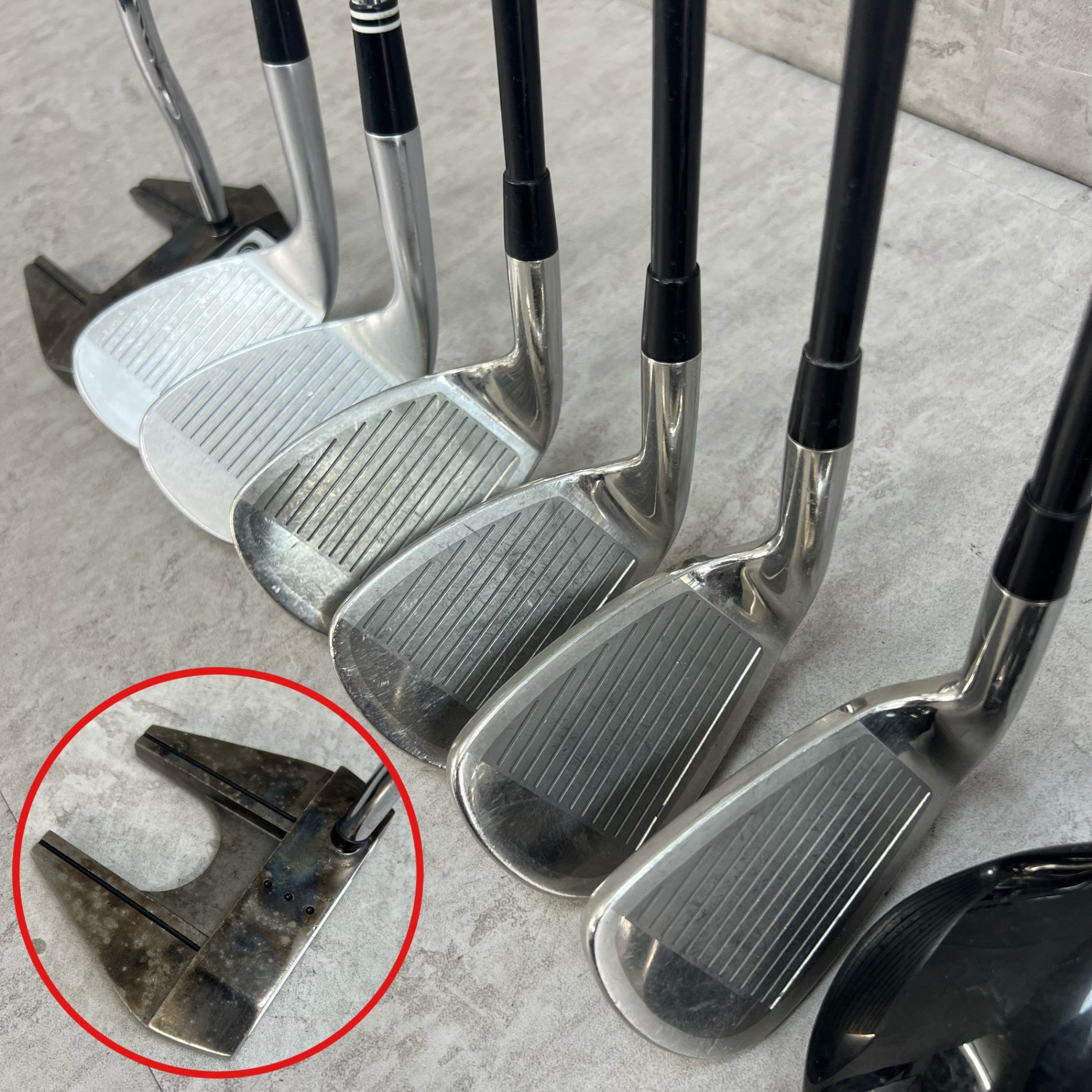 こちらの商品は中古品のため、クラブに使用に伴う傷、パターのヘッドに汚れ、